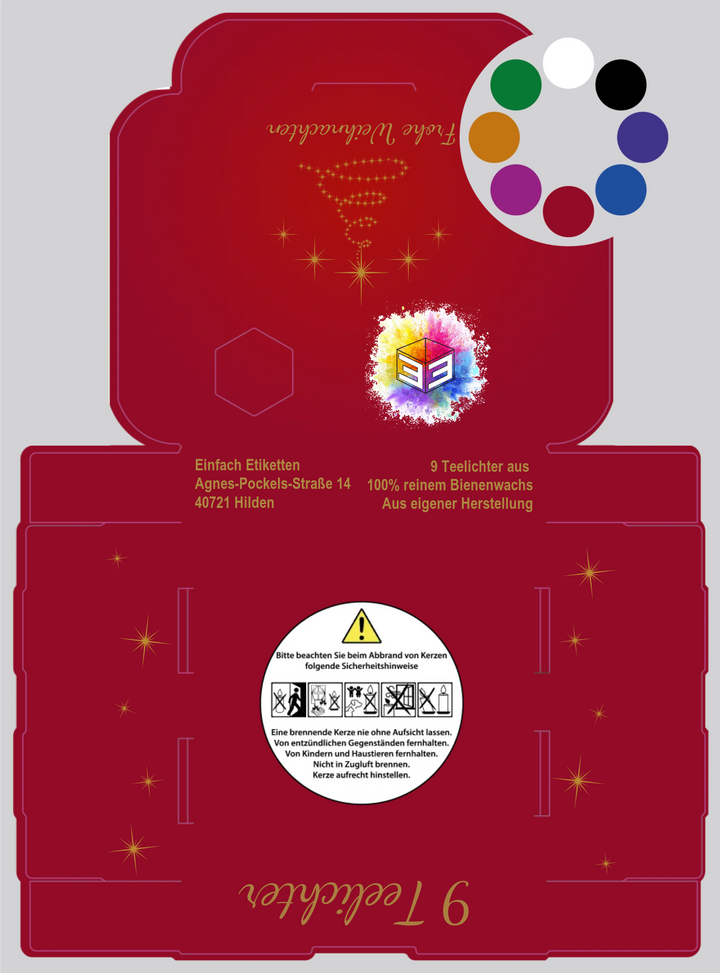 Verschenke festliche Freude mit unserer eleganten 9er-Teelichtverpackung "Goldige Weihnachten"! Jede Box besticht durch glänzenden Golddruck und funkelnde Glitzereffekte, die deine Bienenwachskerzen ins rechte Licht rücken. Das Beste: Du wählst die Hintergrundfarbe ganz nach deinem Geschmack – von klassischem Rot bis zu modernem Dunkelgrün. Perfekt zum Verschenken oder zum Verwöhnen deiner eigenen vier Wände. Eine weihnachtliche Verpackung, die genauso strahlend ist wie die Kerzen darin!