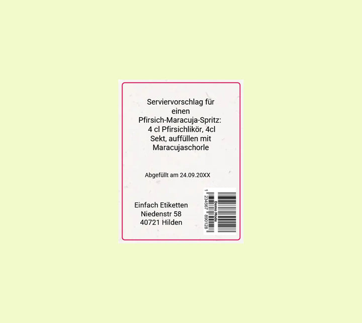 Dieses Etikett ist wunderbar für Liköre und andere Schnäpse geeignet.  Das Etikett passt auf viele Gläser und Flaschen. 32 Etiketten passen auf einen Bogen.