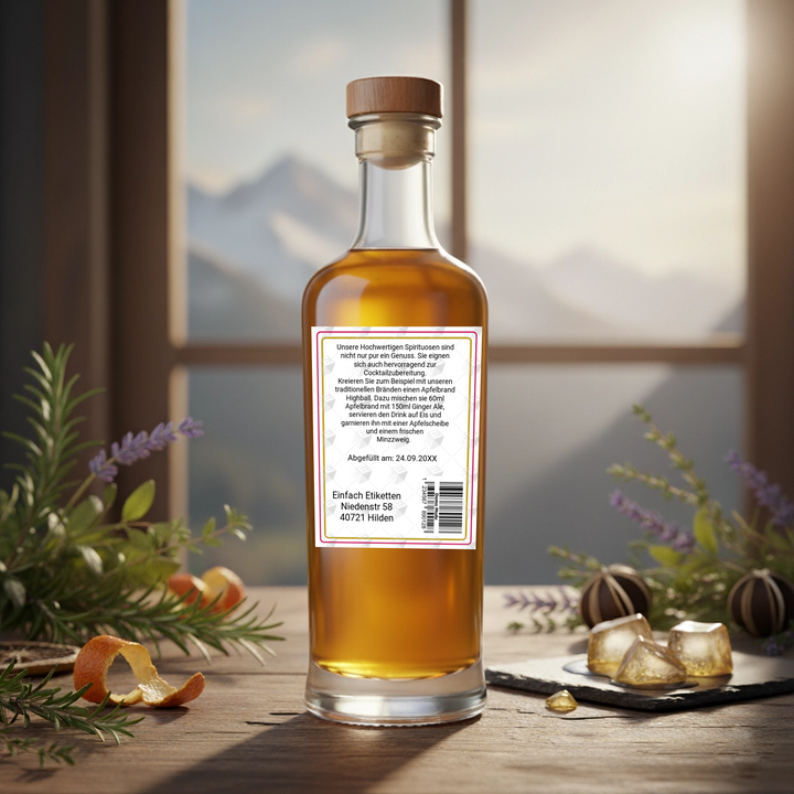 Mach deine Flaschen zum Star der Show mit unserem "Splash" Rückseiten Etikett! Dieses knallige Design passt sich mühelos an verschiedenste Flaschenformen an und verleiht deinen Spirituosen sofort Persönlichkeit. Mit diesem Label setzt du ein echtes Zeichen – professionell, flexibel und garantiert nicht zu übersehen. Deine Marke verdient einen großen Auftritt!