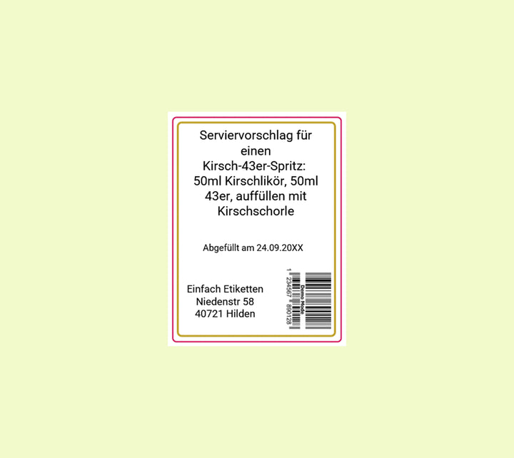 Dieses Etikett ist wunderbar für Liköre und andere Schnäpse geeignet.  Das Etikett passt auf viele Gläser und Flaschen. 32 Etiketten passen auf einen Bogen.
